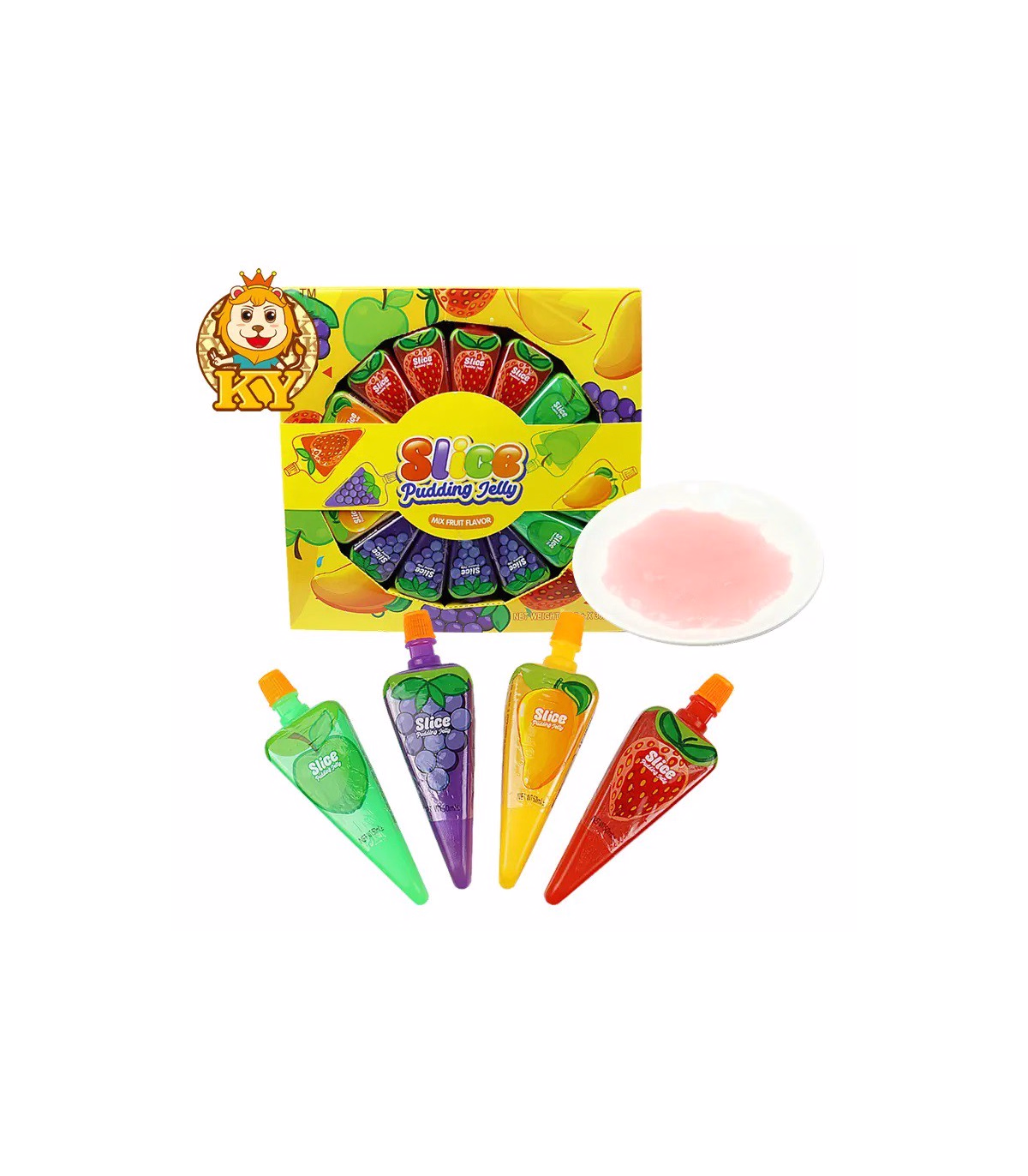 محصول Slice Pizza Jelly (اسلایس پیتزا ژلی) نوعی ژله آماده و خوشطعم با طراحی خاص و رنگارنگ است که به شکل تکههای کوچک پیتزا ساخته شده. این دسر جذاب با طعمهای متنوع میوهای مانند سیب، توتفرنگی، انبه، انگور و پرتقال، انتخابی ایدهآل برای کودکان، مهمانیها و میانوعدههای روزانه است.