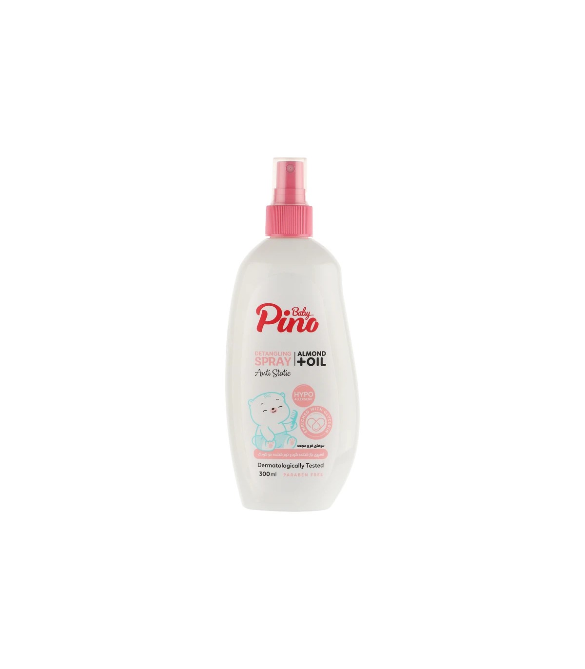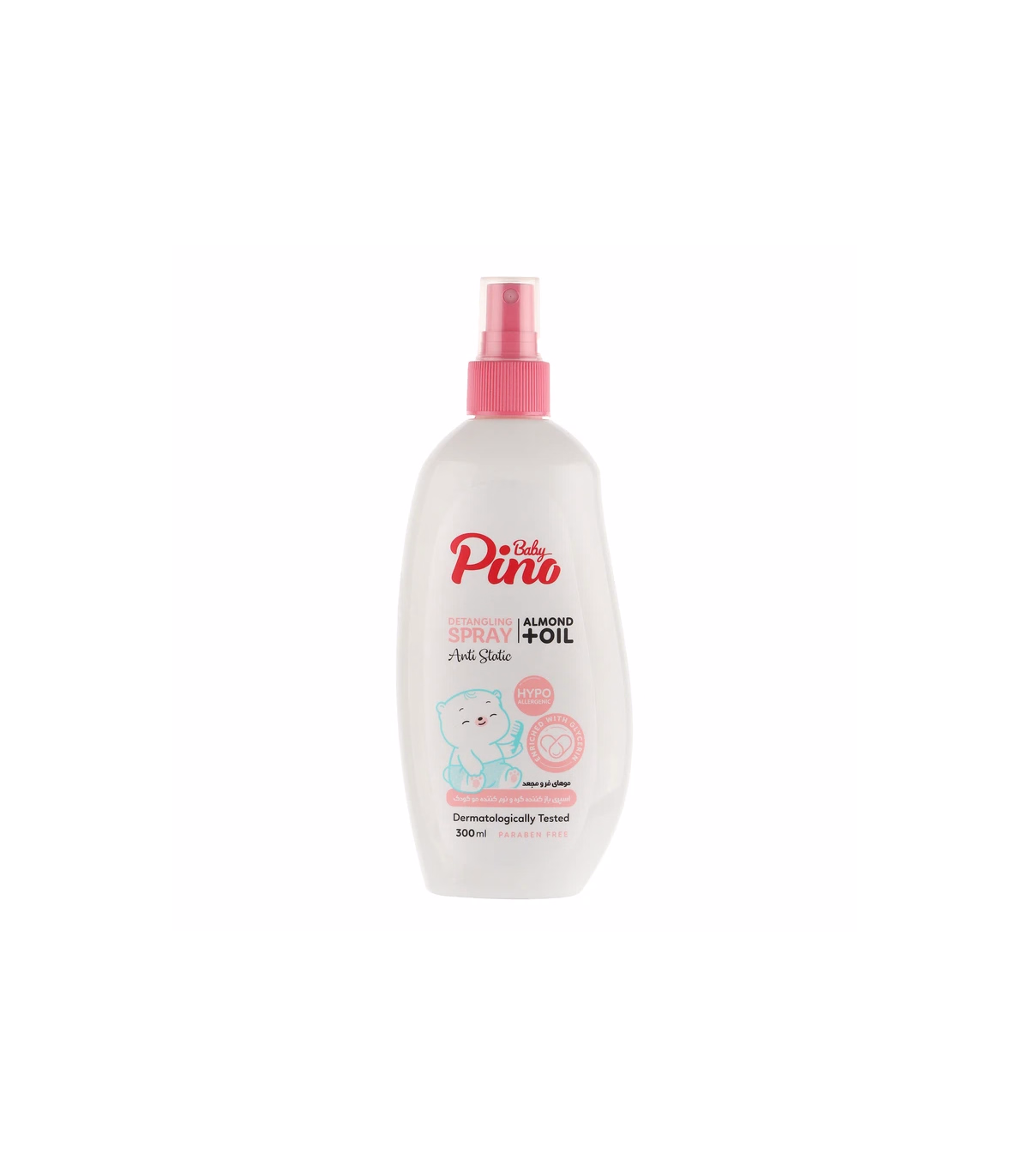 اسپری نرم کننده و باز کننده گره مو کودک پینو مدل روغن بادام حجم 300 میلی لیتر