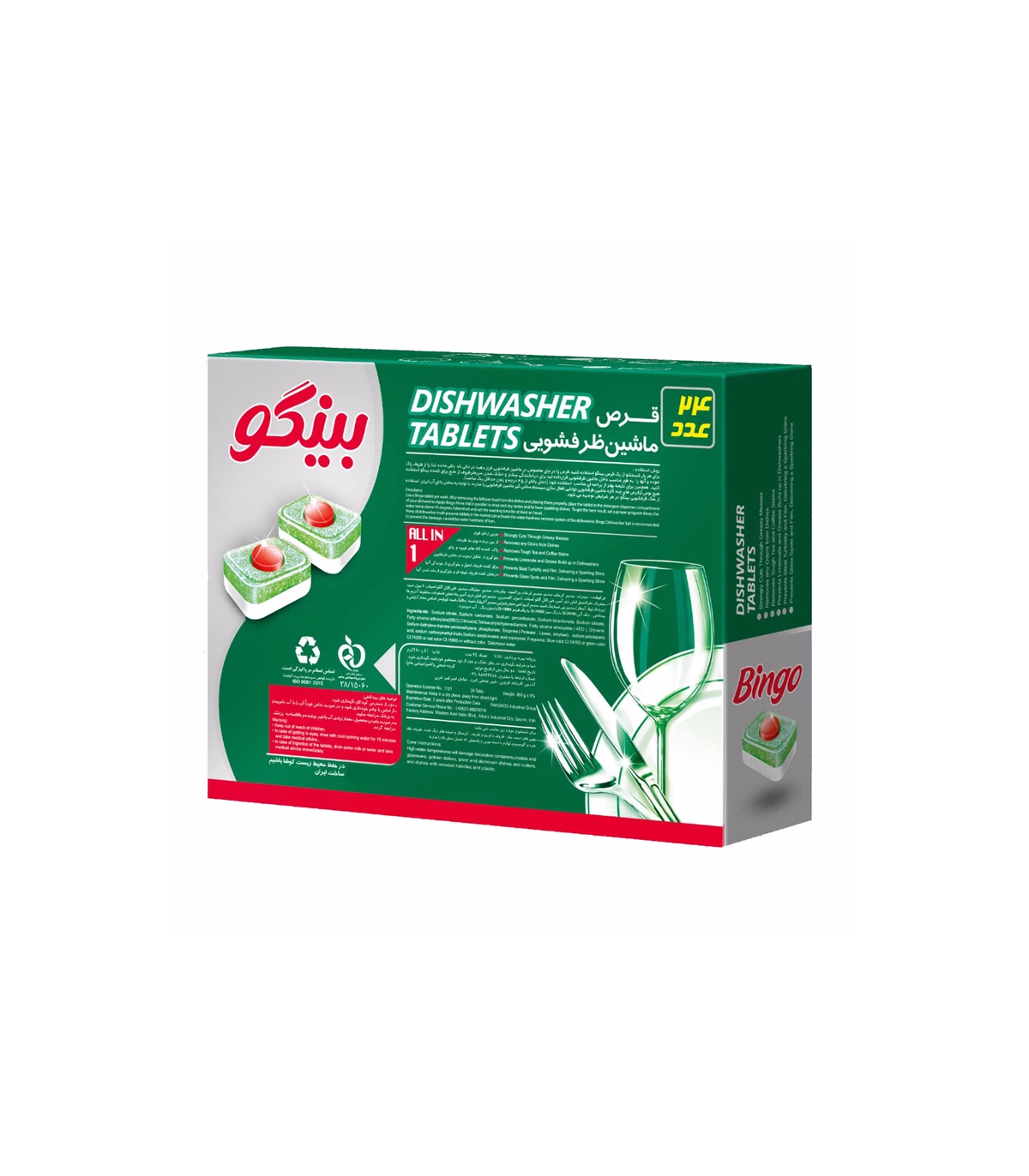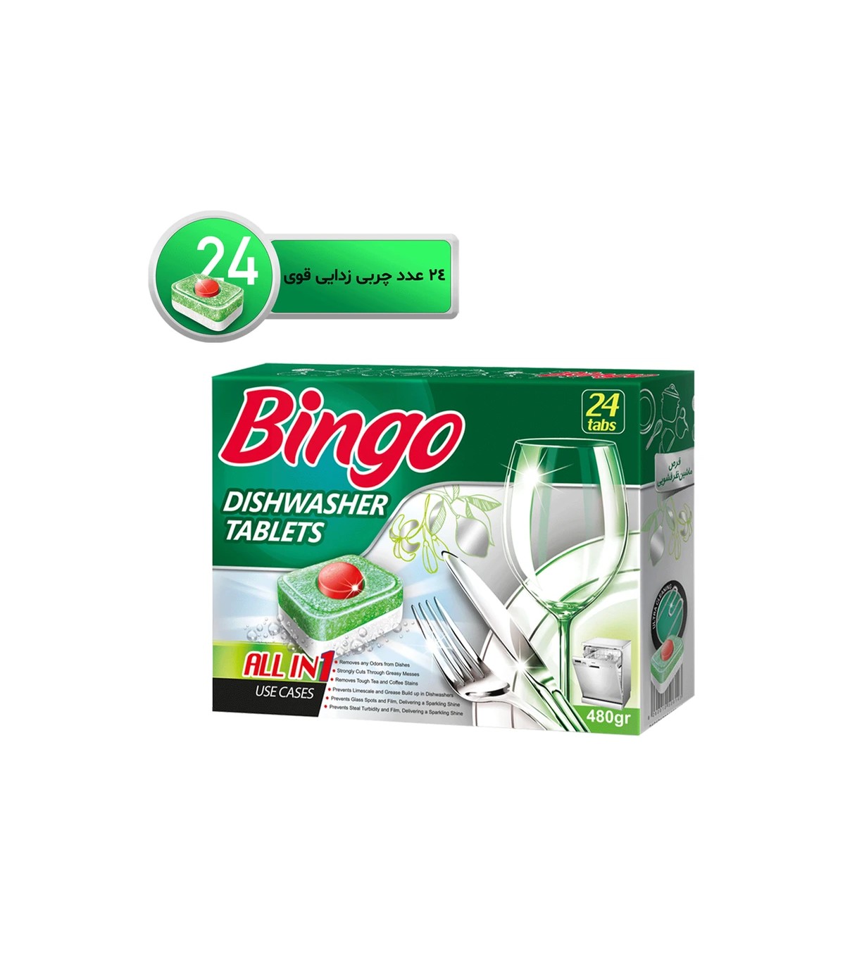 قرص ماشین ظرفشویی بینگو مدل ALL IN ONE بسته 24 عددی