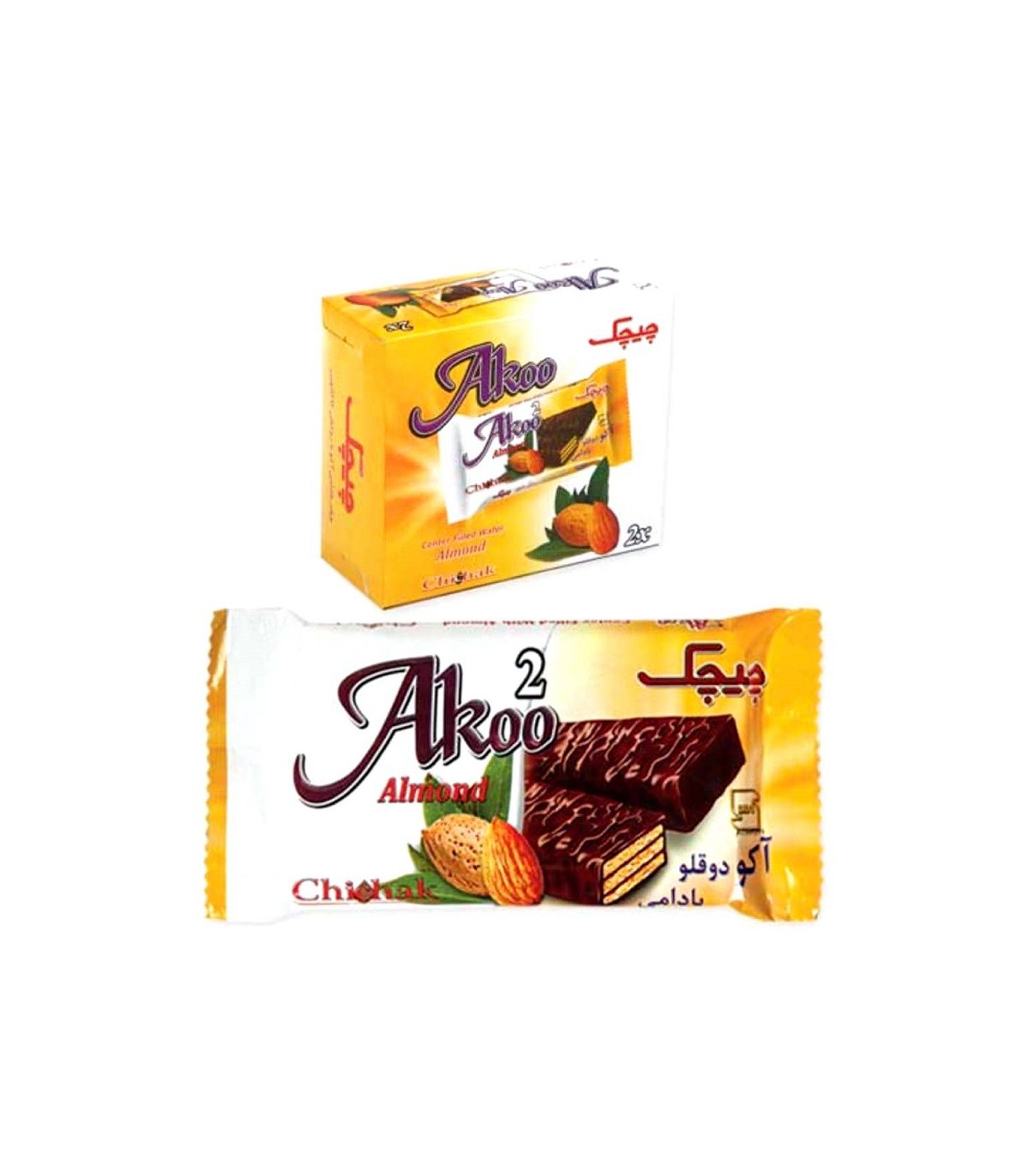 🍫ویفرشکلاتی دوقلو چیچک آکو با طعم بادام _ 55 گرم