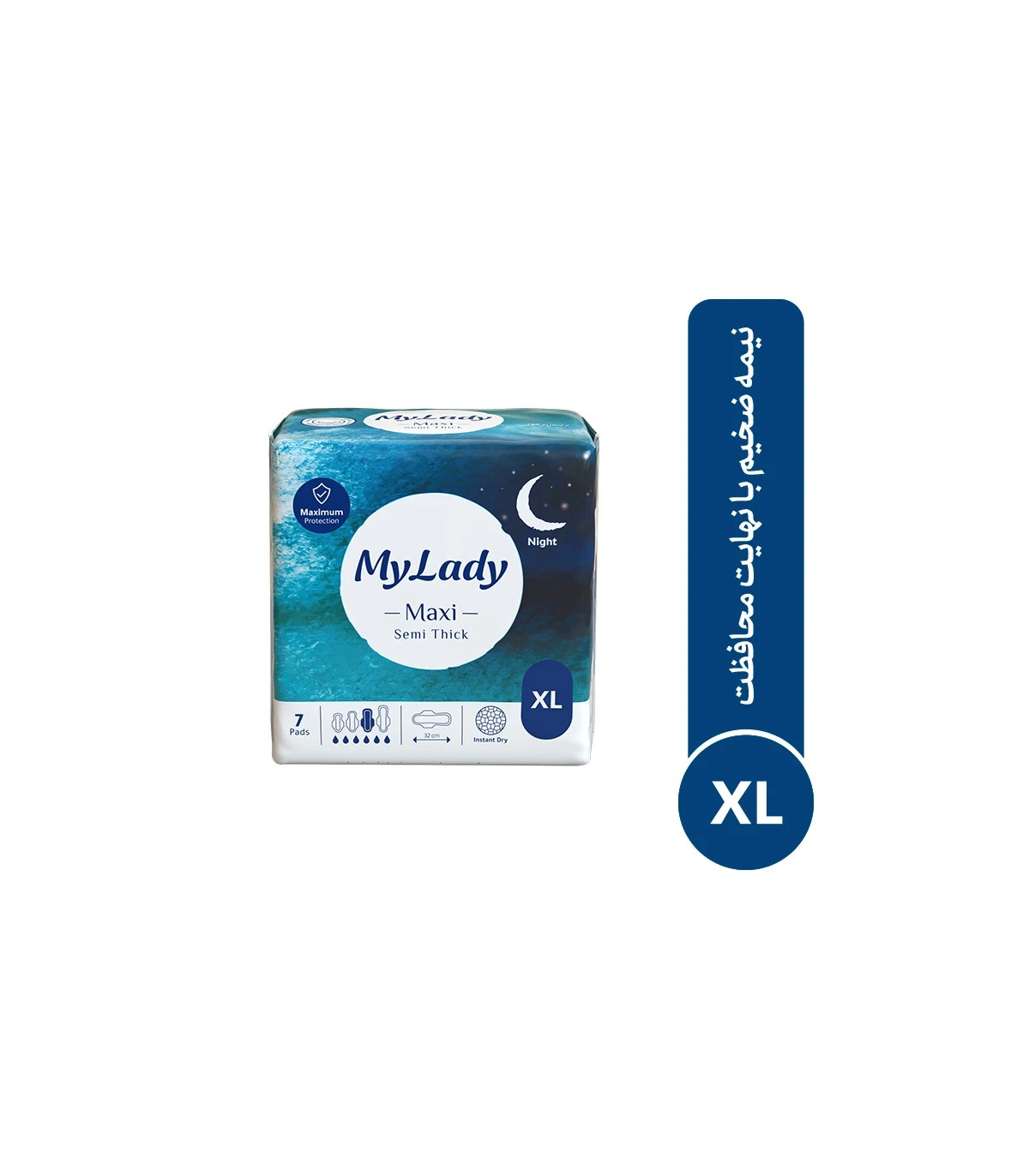 نوار بهداشتی بالدار متوسط مخصوص شب مای لیدی مدل Maxi سایز خیلی بزرگ بسته 7 عددی