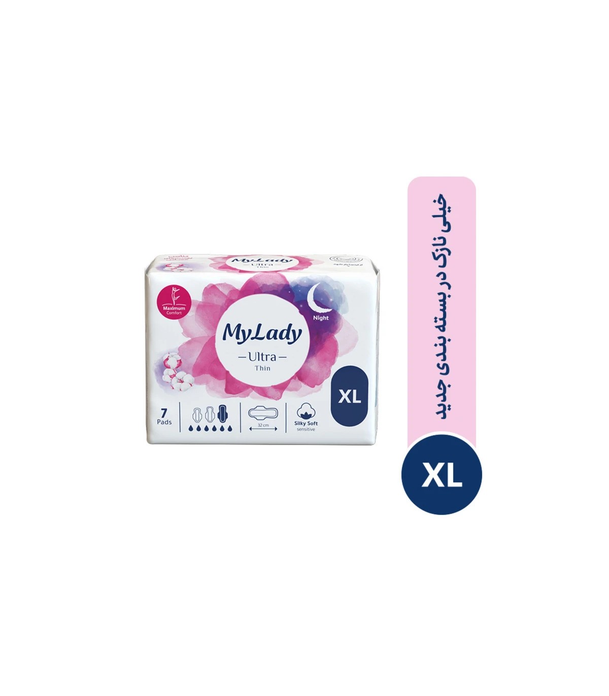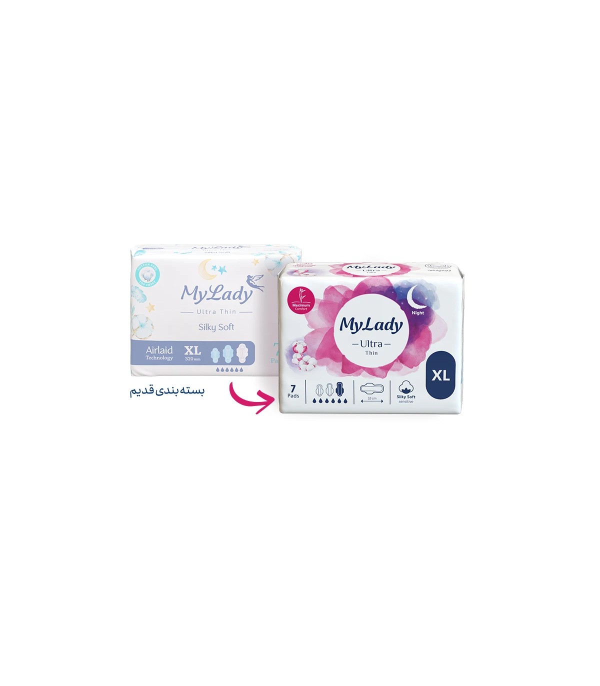 نوار بهداشتی بالدار نازک شب مای لیدی مدل Silky Soft سایز خیلی بزرگ بسته 7 عددی | گارانتی اصالت و سلامت فیزیکی کالا