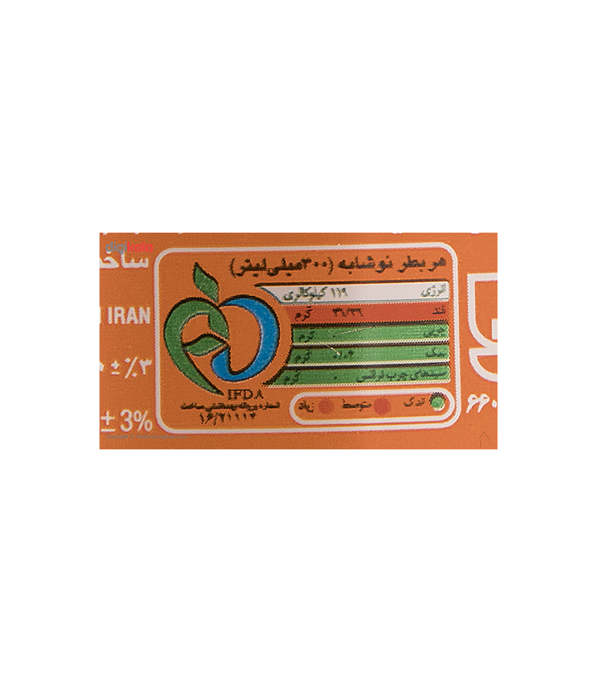 ارزش غذایی محصول در هر ۳۳۰ میلی‌لیتر: - انرژی: ۱۱۹ کیلوکالری - قند: ۲۹.۲۹ گرم - نمک: ۰.۰۴ گرم - فاقد چربی و اسیدهای چرب ترانس