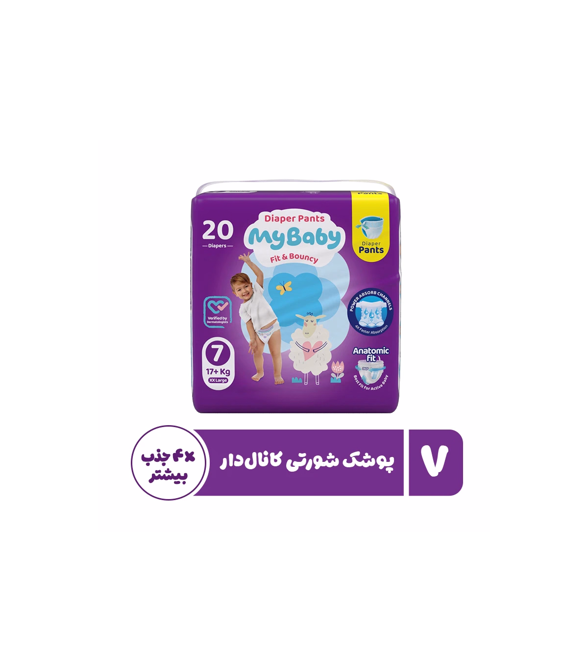 پوشک شورتی مای بیبی مدل کانال دار سایز 7 بسته 20 عددی