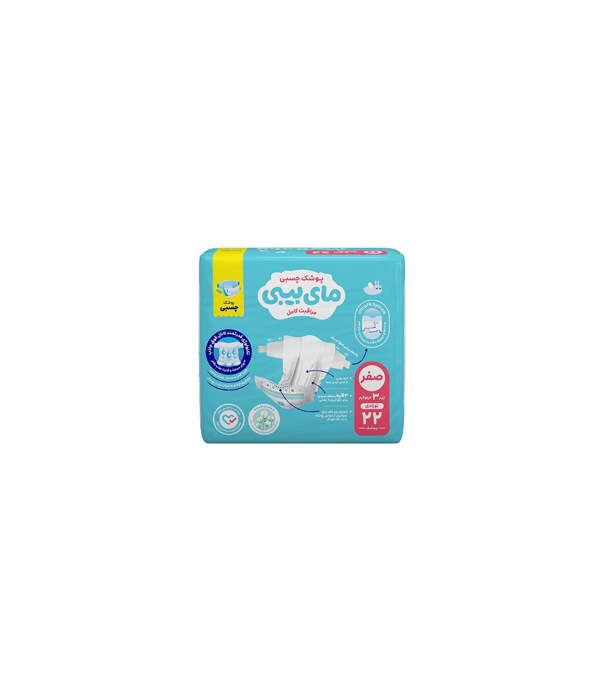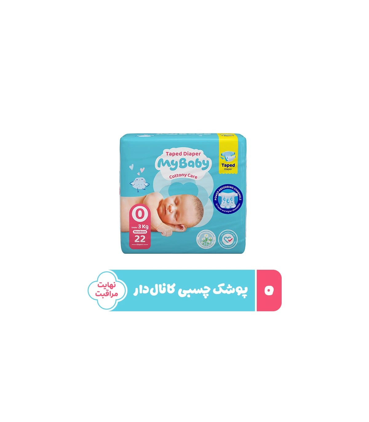پوشک چسبی بچه مای بیبی مدل کانال دار شماره 0 سایز Newborn بسته 22 عددی