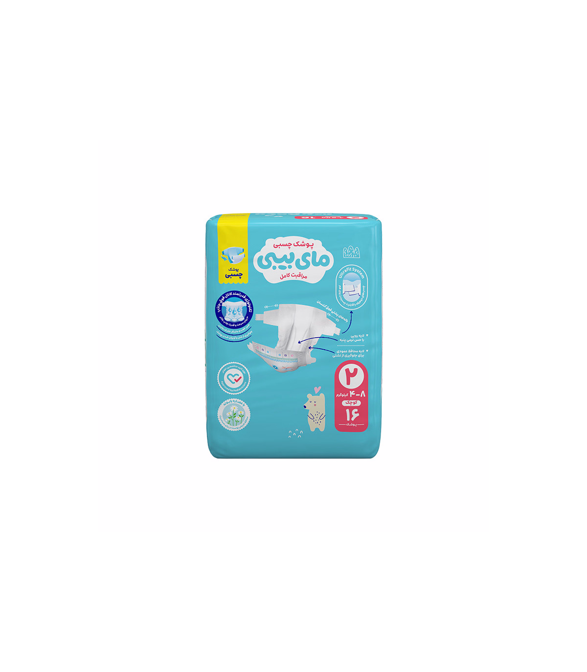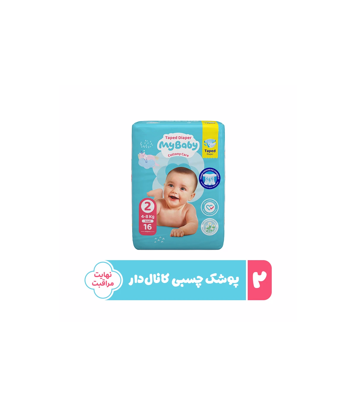 پوشک چسبی بچه مای بیبی مدل کانال دار شماره 2 سایز S بسته 16 عددی